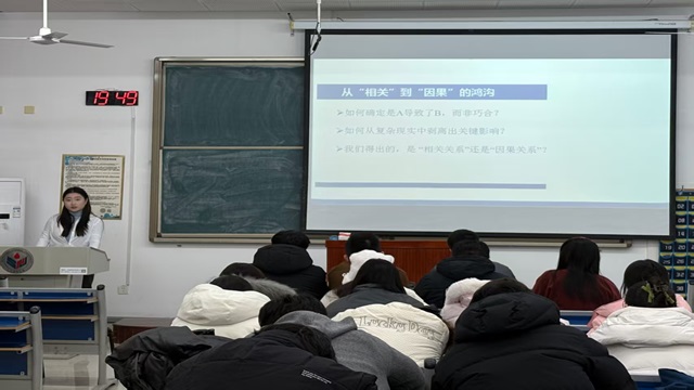 主讲人唐齐分享了《非此即彼:社会科学研究指南》一书。她首先指出,社会科学研究的根本在于从“相关”中识别“因果”,并将因果推断视为贯穿研究始终的严谨思维范式;接着阐释了如何利用工具变量法寻找有效的外生工具变量,突破内生性限制,从而在观察性研究中有效推断其中的因果关系;最后主讲人提醒同学们,在进行研究时既需借助科学方法追求精确解释,也需清醒认识方法本身的边界,在实证严谨性与价值判断之间维持必要的平衡。