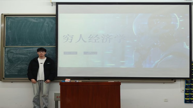 国际商务一组主讲人郭百涛分享了《穷人经济学》一书。他首先介绍了作者西奥多・舒尔茨(Theodore W. Schultz)在农业经济学与人力资本理论领域的深厚学术积淀;接着阐释了该书籍的核心观点——贫困的本质是机会缺失与资源错配,而非穷人自身存在缺陷;随后从人力资本理论出发,指出教育、健康、技能等资本积累是实现长效脱贫的核心所在,单纯物质救济无法解决根本问题;最后,他结合“全球减贫”这一案例,指出政策支持应聚焦资源的战略性倾斜与机会的结构性公平,为穷人创造发展条件。