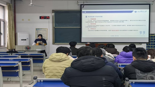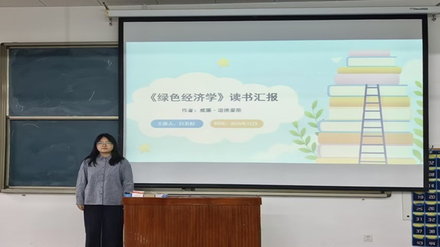 12月23日,英国正版365首页成功举办了研究生第293期读书会。本次读书会以“中国经济实践与绿色发展”为主题,由2025级理论经济学博士研究生郭琬婷、硕士研究生白若杉担任主讲人,范潇婉、傅玉妍、江嘉明、林笑羽担任与谈人。钱婷婷任指导老师,学院研究生参会。