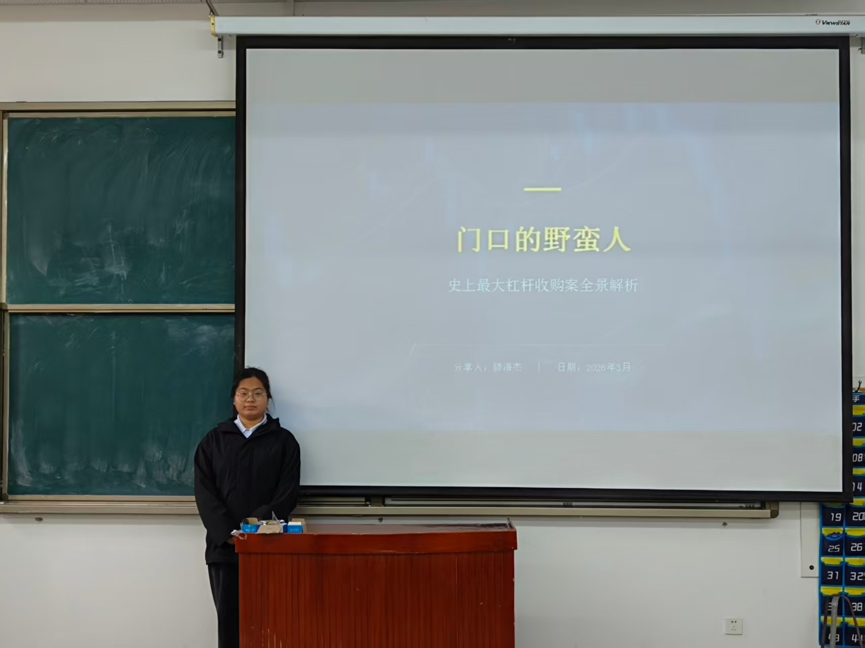 国际商务一组主讲人滕海杰分享了《门口的野蛮人》一书。她首先介绍了本书的作者布赖恩・伯勒(Bryan Burrough)和约翰・希利亚尔(John Helyar),指出其作品以精准还原商业博弈细节、深刻刻画人性与资本的激烈交锋而著称。随后,她深度剖析了雷诺兹-纳贝斯克杠杆收购事件的全过程,阐释了华尔街资本运作、管理层博弈与恶意收购背后的商业逻辑。最后,主讲人结合现代企业治理与资本市场规则,分析了该案例对企业并购风险防控、公司治理结构优化的现实启示。
