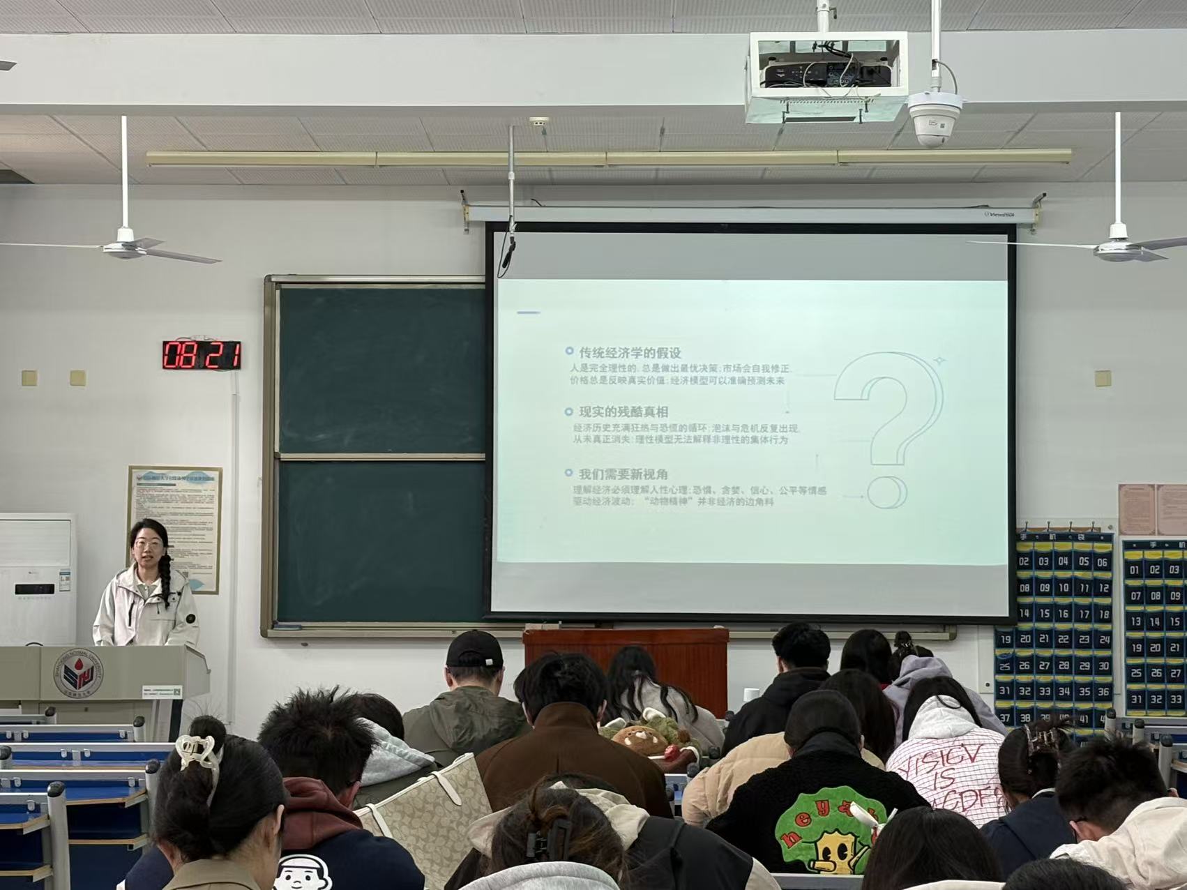 国际商务一组主讲人王亚楠分享了《动物精神》一书。她首先介绍了“动物精神”这一概念的起源,指出动物精神是经济波动的关键引擎。接着,主讲人指出信心作为最重要的动物精神,可引发经济扩张或收缩等一系列连锁反应。最后,她以2025年3月黄金市场波动这一案例为切入点,阐释了信心、叙事、公平感、货币幻觉、市场失信行为这五大因素如何相互作用、引发市场剧烈波动。