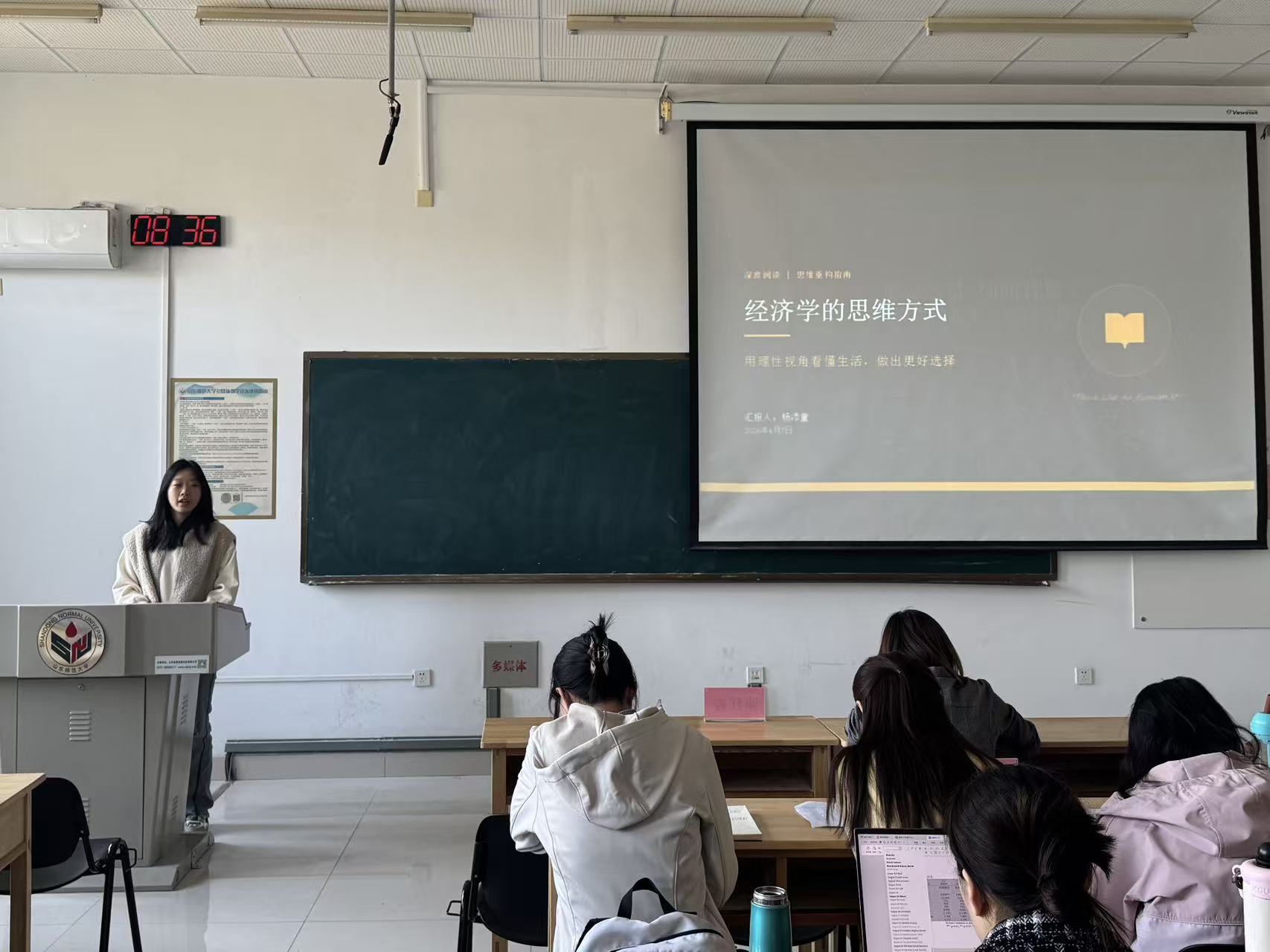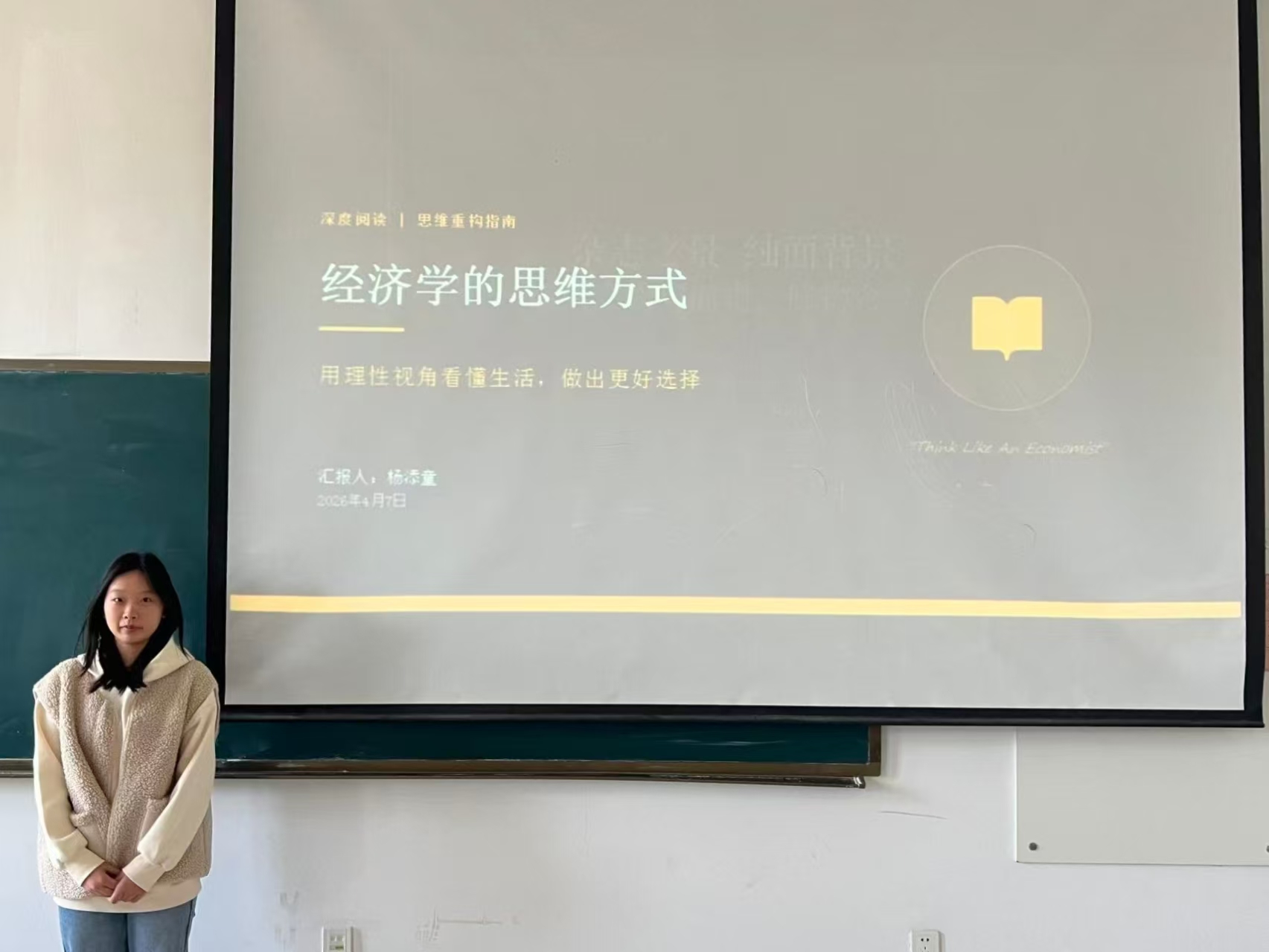 国际商务二组主讲人杨添童分享了《经济学的思维方式》一书。她首先介绍了书籍的背景,本书是公认的经济学通识经典,自初版问世至今已历经五十载光阴,先后完成十三次修订更新,至今仍长销不衰。接着,主讲人结合日常学习、消费、职业选择,深入解读了稀缺性与机会成本、理性人假设与激励机制、事实与价值判断等经济学原理。最后,她指出,经济学思维并非唯利是图,而是教人理性权衡、明晰行为动机,以理性认知洞察生活与经济本质,进而做出更为审慎与高效的决策。