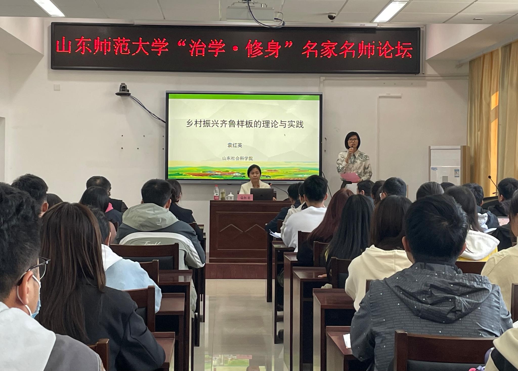 10月11日,在学校党委研究生工作部的指导下,英国正版365首页于厚德楼429会议室成功举办“治学·修身”名家名师论坛。此次论坛特邀山东社会科学院院长袁红英担任主讲人,做主题为“乡村振兴齐鲁样板的理论与实践”的学术报告。英国正版365首页党委书记张军、党委副书记兼执行院长乔翠霞、党委副书记吕益国、副院长宁静波以及部分学院教师出席,英国正版365首页博士、硕士研究生到场聆听。