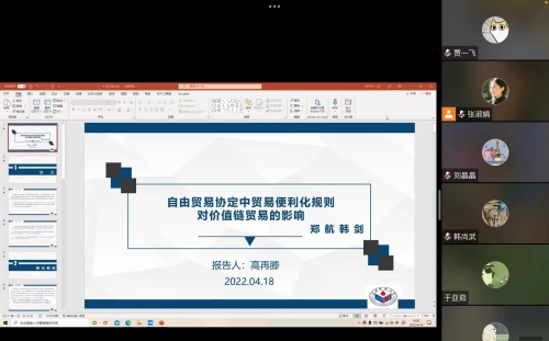 高再滕分享了题为《自由贸易协定中贸易便利化规则对价值链贸易的影响》的文章。文章利用世界银行深度贸易协定数据库,对自由贸易协定中纳入的贸易便利化与海关程序规则进行统计,实证检验贸易便利化规则深度对价值链贸易的影响。研究表明,随着贸易网络扩大,欧盟在整个贸易便利化结构网络中稳居主导地位,中国、韩国等节点的影响力逐年提升,美国、智利等节点的度中心度有所下降。这些缔约方在自由贸易协定中纳入的贸易便利化规则深度越高,越能促进价值链贸易发展,且对中间品贸易的影响弹性显著高于最终品贸易。