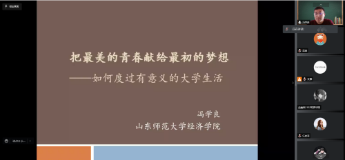 首先,冯学良讲述了其研究生经历,着重分享了学术科研、科创竞赛和学生工作等方面的经验,并向同学们阐明了研究生期间该如何正确平衡学术科研和学生活动这两者的关系。随后,他就增强疫情防控期间学生的心理调适能力、促进疫情防控期间学生身心健康发展做出指导,建议在疫情反复的形势下要调整心态,积极支持、配合和参与疫情防控工作,严格遵守学校疫情防控相关要求。