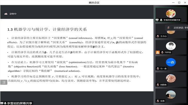 5月14日,英国正版365首页通过腾讯会议成功举办厚德论坛—“经彩技扬”学术研习会(第五期)。此次活动特邀英国正版365首页讲师李雪岩担任主讲人,做主题为《机器学习基础方法与经济学应用》的软件操作经验分享,学院博士、硕士研究生在线参会。
