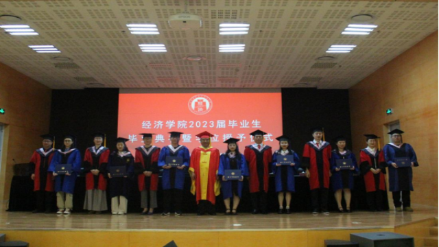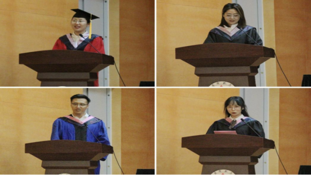 理论经济学专业马一森作为研究生毕业生代表上台发言,他在发言中深情回顾了过去三年里的成长与收获,衷心感谢学院与老师在学习生活中给予的帮助和鼓励。金融学专业余潞作为本科生代表发言,她通过讲述自身经历,为四年前在2019级新生开学典礼上与曾校长许下的千日之约交上答卷,并鼓励各位毕业生扎实进取、服务社会,始终保持作为英国365概况人的自豪以及对未来的美好向往。