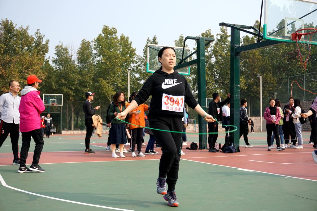 经院老师亦不甘落于学子之后,在课堂上,他们传授知识。今天在操场上,他们以自己的行动为我们树立拼搏的榜样。珠行万里、立定跳远、众星捧月、异程接力、十人投篮……经院老师们配合默契,连续斩获佳绩。教工组比赛既有学生组的紧张有序,又充斥着欢声笑语,比赛中健康与快乐双丰收。“运动场上的同台竞技,拉近了师生之间的距离,加强了师生之间的交流。不仅如此,运动会提供给了大家一个展现魅力与风采的机会,使大家能够一起共享欢乐。”面对记者的镜头,教工组参赛选手、2018级辅导员王学谈及运动会开展对同学和教工的意义。