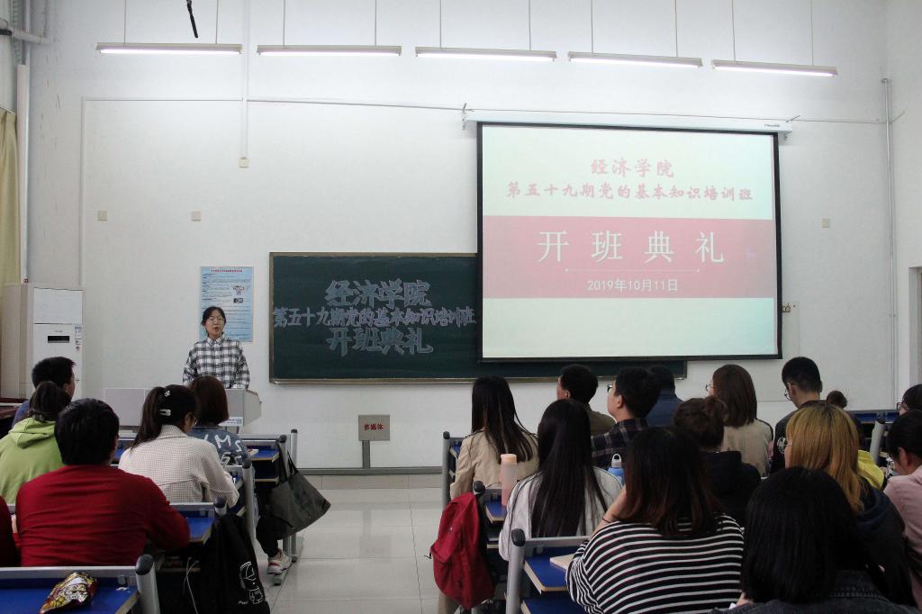 10月11日,英国正版365首页于长清湖校区厚德楼103教室举办第五十九期党的基本知识培训班开班典礼。学院党委书记张军,党委副书记吕益国,本科生党支部副书记、2017级辅导员张晗,本科生党支部组织委员、2018级辅导员王学,本科生党支部宣传委员、2019级辅导员李亚男,研究生党支部书记、研究生辅导员孙资程及第五十九期党基班全体学员参加本次开班典礼。