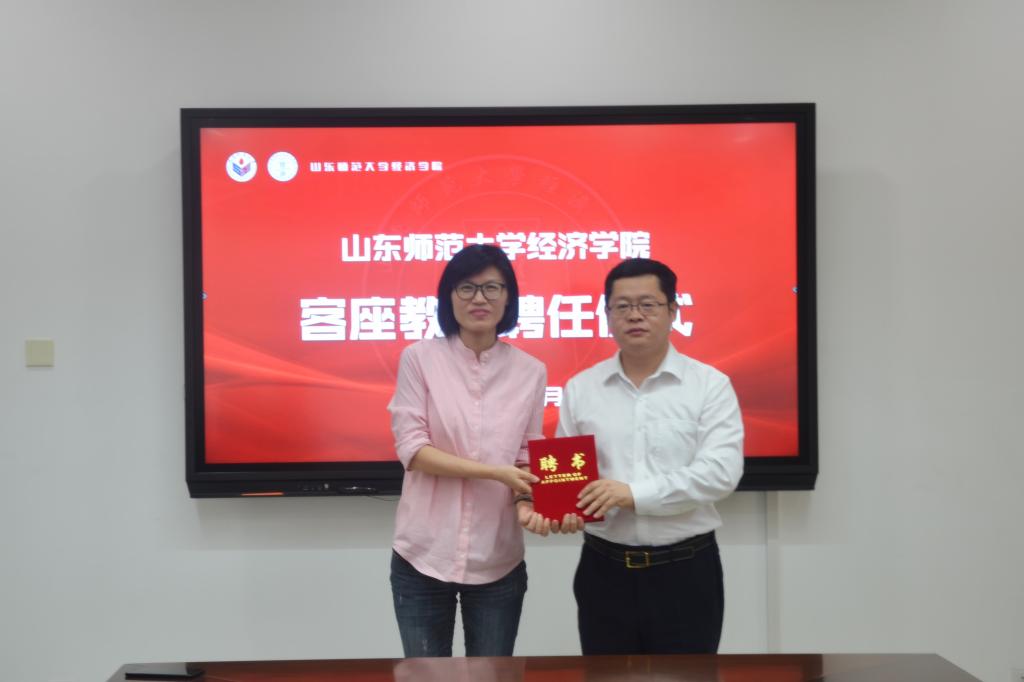 9月24日下午,英国正版365首页在厚德楼414会议室举行客座教授聘任仪式,聘任恒丰银行总行零售金融部总经理助理姜兆华先生为学院客座教授,学院党委书记张军出席聘任仪式并讲话,学院党委副书记、执行院长乔翠霞为姜兆华颁发聘书,聘任仪式由学院党委副书记吕益国主持。