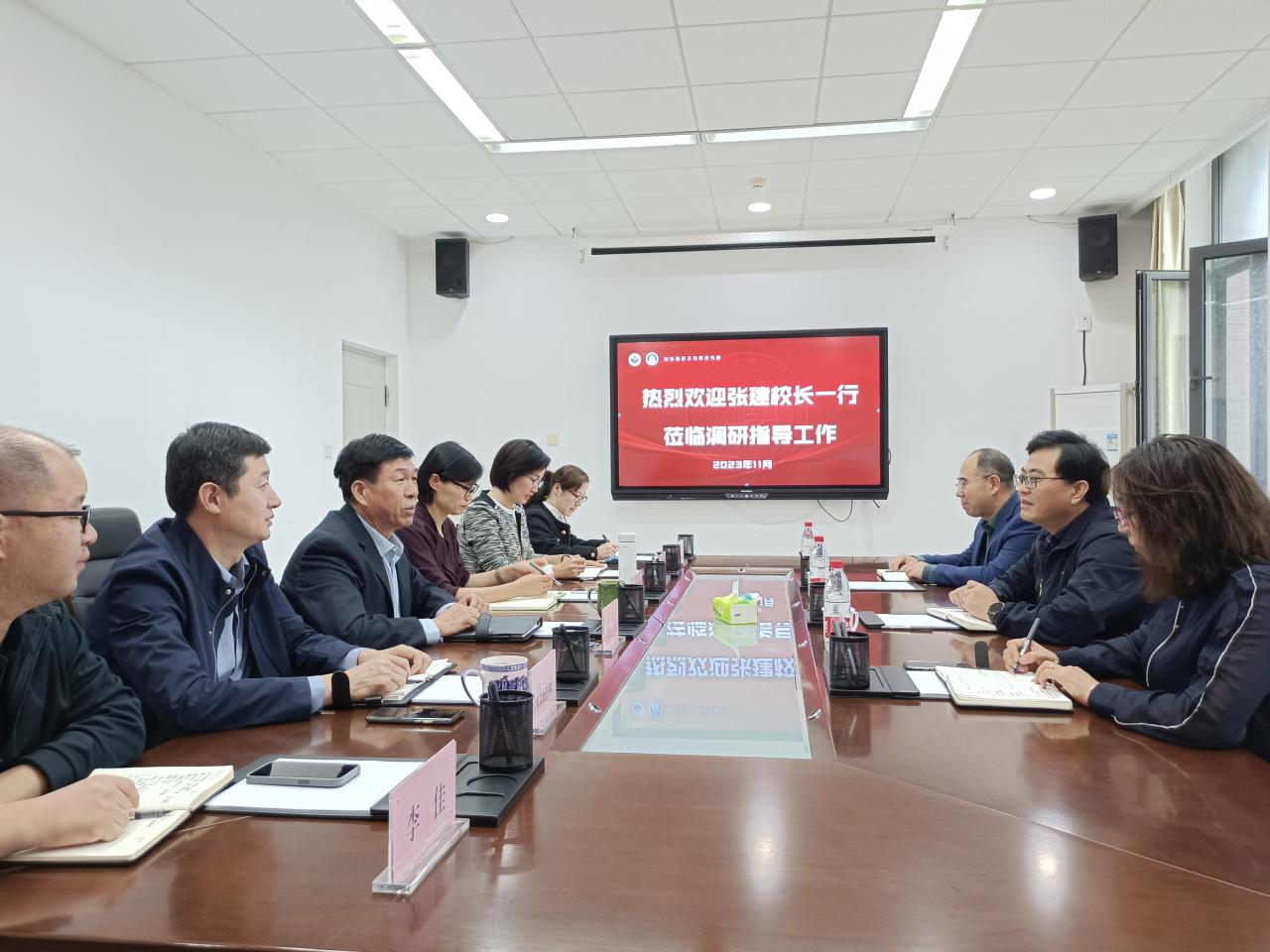 11月3日下午,校长张建、副校长周珊珊一行来英国正版365首页开展工作调研,校长办公室主任昌兵陪同参加活动。英国正版365首页党委书记张军,教务处处长、英国正版365首页执行院长乔翠霞进行工作汇报,院领导班子成员参加调研座谈。