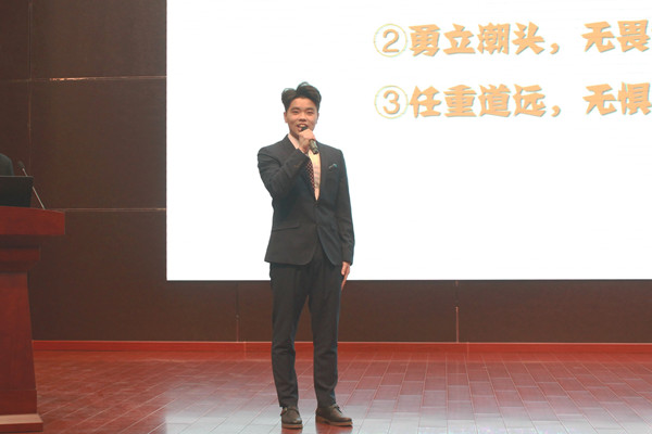 在“十佳学生干部”评选汇报中,吴浩然以“无问西东”为主线,从“只问初心”、“勇立潮头”以及“任重道远”三方面介绍自己的理想追求、工作表现和荣誉。汇报思路清晰、现场展示灵活、PPT和视频制作精美、充分展现了作为学院学生会主席、班长在日常学习生活中勇于担当、甘于付出、榜样示范的良好形象。他提到,这个时代缺的不是完美的人,缺的是从心里给出的真心、正义、无畏和责任,作为学生骨干的他,在以后的大学生活中将继续不辱使命,用勤勤恳恳、尽职尽责的付出展现新时代大学生的责任担当。汇报最后,吴浩然以一曲《最初的梦想》作结,唱响作为经院学子不忘初心、逐梦未来的心声。