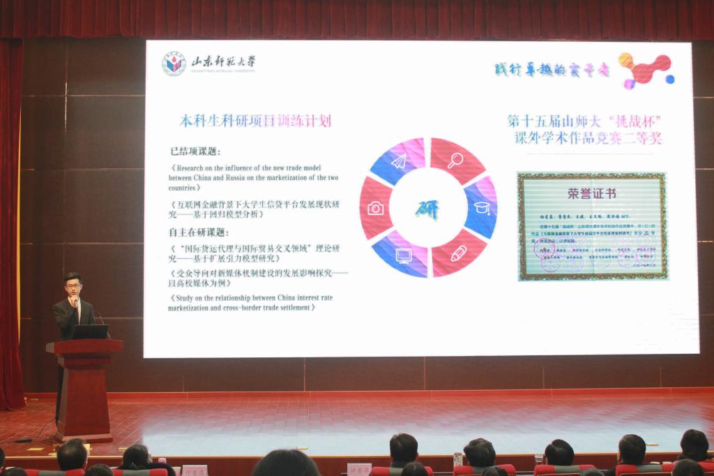 在“十佳大学生”评选展示中,杜星辰表示大学期间自己一直致力于成为学思并进的逐梦人、践行卓越的实干者以及只争朝夕的新媒体人,坚持将最普通的事情做到极致,在学习、工作和创新创业等方面成为标杆和榜样。不仅学习成绩及德育成绩位列专业第一,而且荣获第七届大学生电子商务“三创赛”全国总决赛一等奖等多项国家、省级奖项。演讲过程中,杜星辰引用习近平总书记“为了理想能坚持、不懈怠,才能创造无愧于时代的人生”之语,总结自己两年多大学生涯的成长之路,制作精美的PPT和视频展示、出色的学习成绩和工作业绩、现场稳健成熟的演讲汇报,赢得了老师和同学们雷鸣般的掌声。