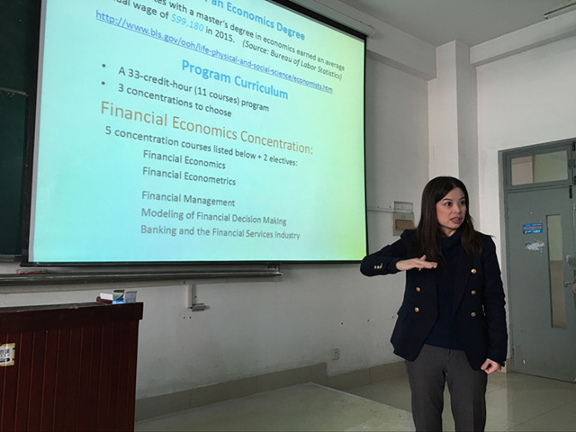 美国德克萨斯大学圣安东尼奥分校商学院经济系主任Melody Lo教授为学生作报告