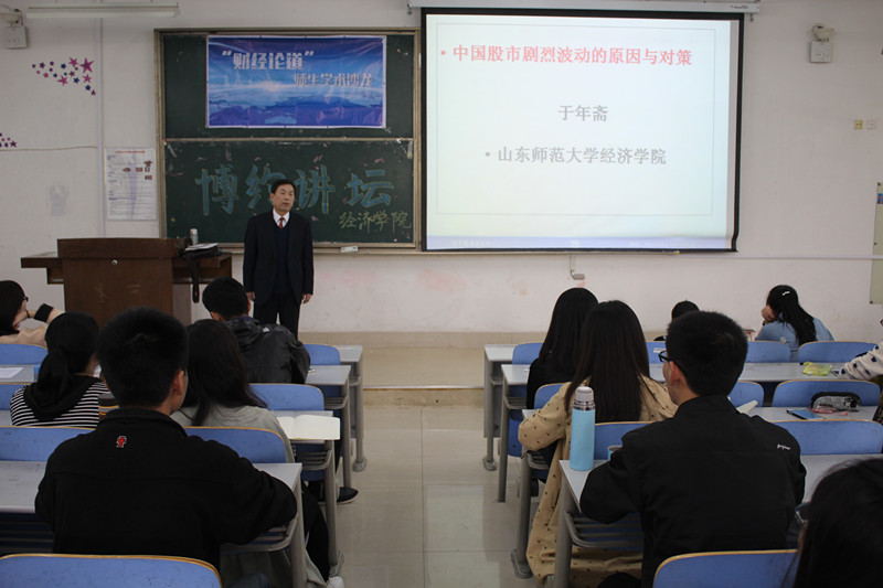 4月14日,英国正版365首页第三期“财经论道”师生学术沙龙于长清湖校区综合教学楼C区126教室举行。英国正版365首页副教授于年斋应邀做题为“中国股市剧烈波动的原因与对策”的学术讲座。英国正版365首页200余名学生共同聆听了此次讲座。