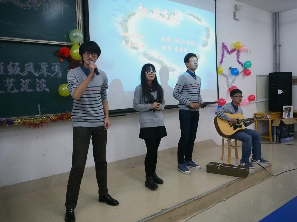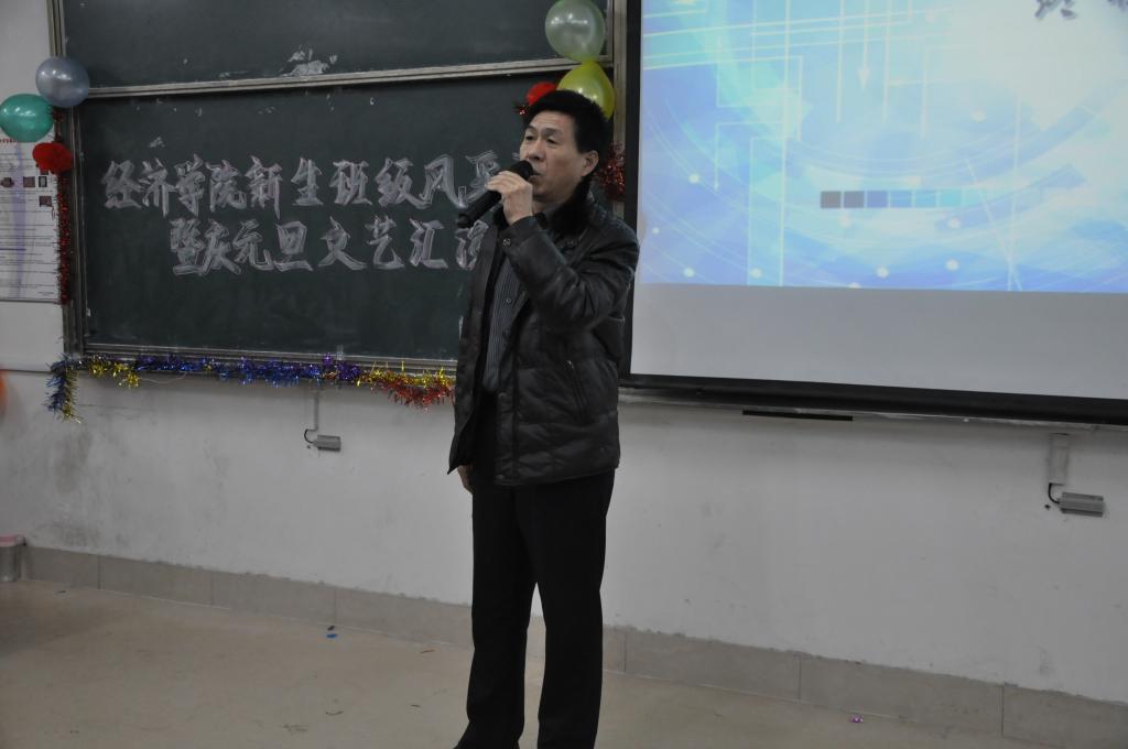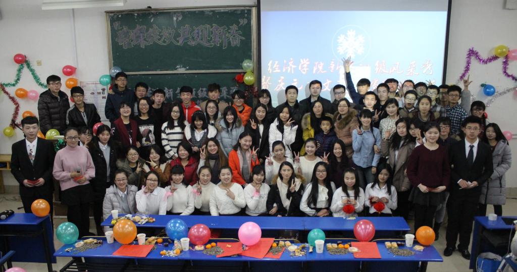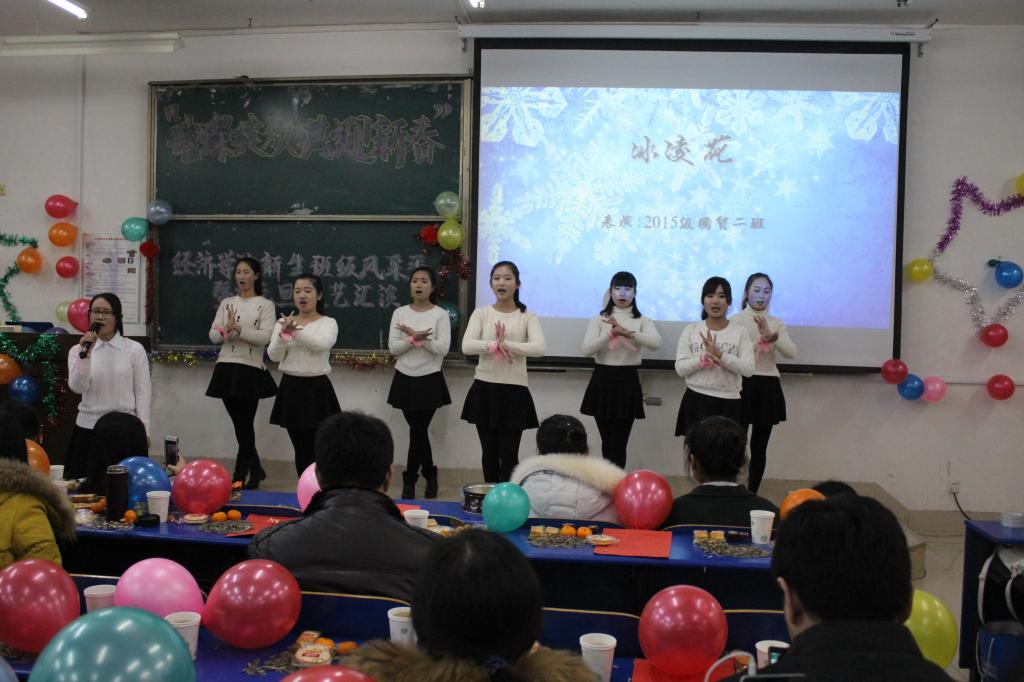 初乐娟代表学校为同学们送上美好的新年祝福,希望同学们在新的一年里再接再厉、筑梦扬帆,为实现理想不懈奋斗。张军代表学院祝福同学们在新的一年再创佳绩,并为同学们演唱了一首饱含深情的《父亲》,赢得现场阵阵掌声和欢呼声。活动现场,歌曲、舞蹈、脱口秀、话剧等多种节目精彩纷呈,热情洋溢的歌曲《新年快乐》拉开了元旦联欢的序幕,每一句歌词都表达了对新年的美好祝愿。舞蹈《shake it》以强有力的节奏、轻快的舞姿点燃全场,跳动的音符奏出属于经院的乐章。随后,2015级国贸一班带来的《青春秀》则以或端庄典雅或搞怪俏皮的走秀展现出当代大学生的魅力与风采。期货班表演的话剧《项羽外传》汇集了诸多2015年的热门词语、段子,让大家在回忆中捧腹大笑。精彩不断,金融二班的舞蹈《江南style》带领全场观众回到了那个热情奔放的神曲时代。在“终极密码”游戏环节,演员们与老师、现场观众精彩互动,共同体验游戏的乐趣。最后,一曲《爱因为在心中》将晚会氛围推向高潮,在全场的倾情合唱中,晚会落下帷幕。