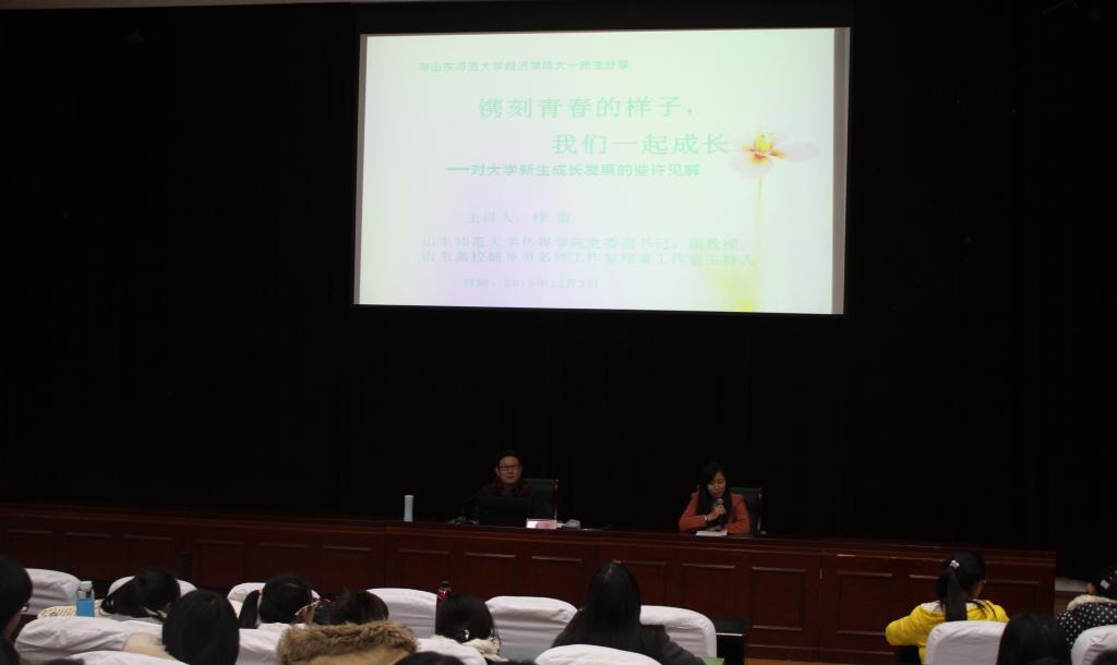 为帮助新生明确奋斗目标,树立正确的世界观、人生观、价值观,更好的实现个人成长发展,12月3日,英国正版365首页在长清湖校区综合教学楼C区154报告厅举办新生入学教育专题报告。我校传媒学院党委副书记、副教授,山东高校辅导员名师工作室“修蕾工作室”主持人修蕾应邀担任主讲,作了题为《镌刻青春的样子,我们一起成长——对大学新生成长发展的些许见解》的主题报告,报告由英国正版365首页党委副书记刘永慧主持,2015级辅导员李明菊、兼职辅导员张海伟和学院全体新生一同聆听了报告。