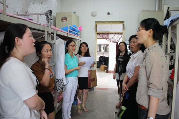 在15号公寓楼男生宿舍,张军与同学们促膝长谈,了解毕业生的就业状况、思想动态,倾听毕业生对大学生活的感悟、对外来的畅想及对学院发展的意见和建议;张宗斌在与毕业生交流中,寄语毕业学子踏上工作岗位后,务必坚守自己内心的选择,不受世俗影响,用勤奋和汗水浇灌出人生最为璀璨的花朵。在10号公寓楼女生宿舍,刘永慧与毕业生同学们谈起毕业前的个人感悟,提醒同学们妥善安排好就业、生活、情感各方面事宜,做到精彩毕业、文明离校;赵文静详细询问了同学们在办理毕业手续、行李寄发等方面的安排,表示学院作为同学们的家会随时为大家提供帮助和支持,并温情寄语同学们为母校争光添彩;乔翠霞针对升学毕业生和准备考研“二战”同学的困惑,结合自身生活、工作经验进行了指导,希望同学们在学术科研之路上勇往直前、勇攀高峰。交流中,老师们亲切真诚,同学们主动热切,师生之间真情流露,气氛和谐。最后,许多同学主动与老师拥抱道别,对老师多年来的教育培养表示由衷的感谢。