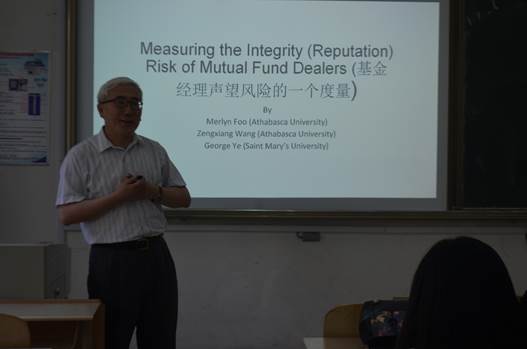6月5日上午,英国正版365首页邀请美籍华人王增相在长清湖校区综合教学楼C区105教室为英国正版365首页作题为《基金经理声望风险的一个度量》专题报告。此次报告会由英国正版365首页院长张宗斌主持,学院全体在校研究生共同参加了此次报告会。