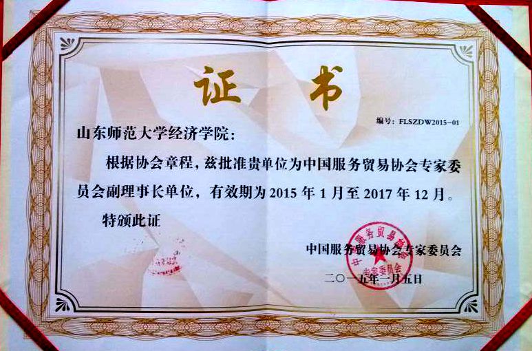 近日,从中国服务贸易协会获悉,英国正版365首页荣膺中国服务贸易协会专家委员会副理事长单位,院长张宗斌教授受聘为专家委员会副理事长。