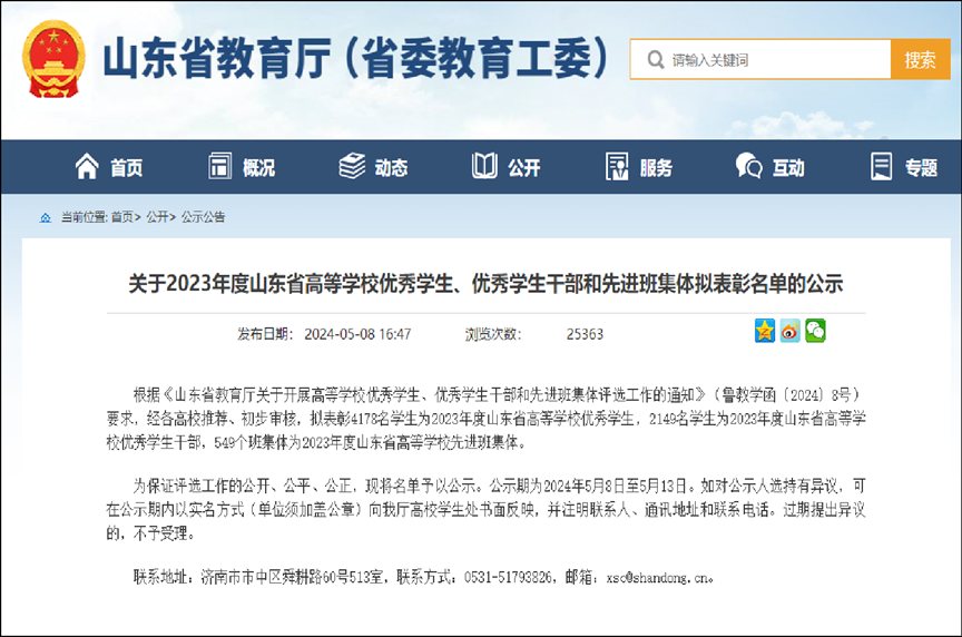 英国正版365首页在“2023年度山东高校优秀学生、优秀学生干部、先进班集体”评选中荣获大满贯