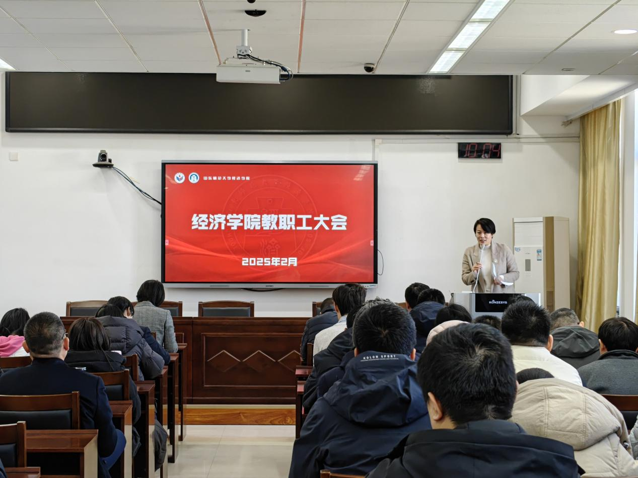 随后,副院长宁静波传达了张建校长关于学校2025年工作的部署安排。她首先回顾总结了过去一年学院在党建工作、教育教学、科学研究、学生工作以及国际交流等方面取得的显著成绩和亮点。接着,她重点对学院2025年的工作进行了部署,指出学院将聚焦于AI赋能教学科研、学术成果提升、教育教学创新、课程质量提高、研究生特色培养、有组织科研培训、学生工作品牌打造以及科创实践提升等八大关键领域,开展重点建设。此外,她还明确了学位点建设、科研能力提升、聘期考核以及教学质量提高等方面的具体要求,为全体教职工指明了工作方向。