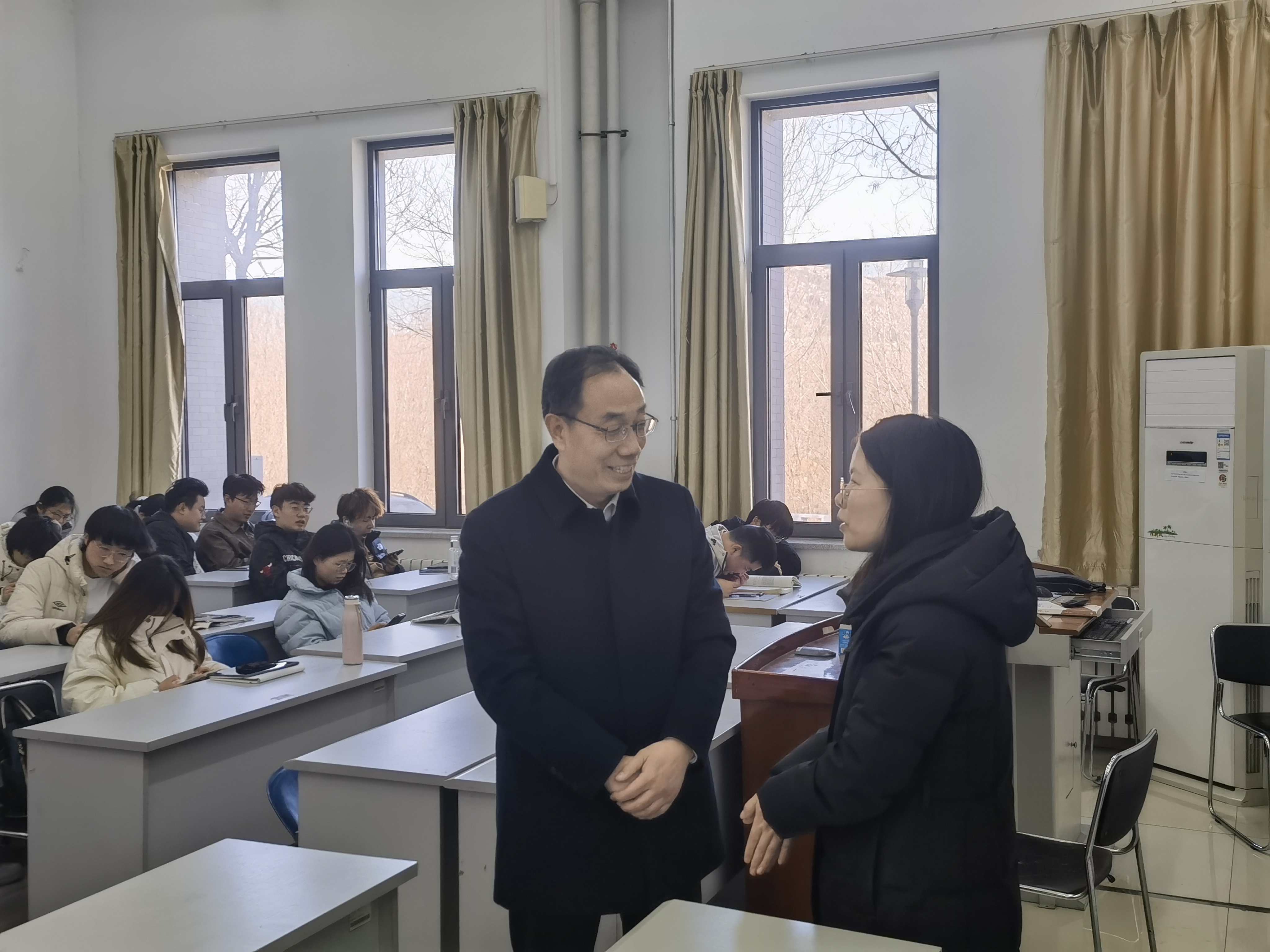 2月24日上午,校党委书记冯继康深入英国正版365首页教学一线进行推门听课,实地调研青年教师备课、授课和学生课堂听讲的情况。