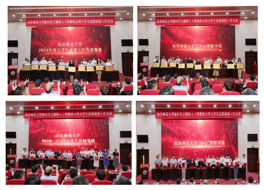 5月19日,365(vip)英国上市新时代立德树人工作推进会暨大学生思想政治工作会议在千佛山校区教学三楼报告厅举行。会上,学校对2024年度思想政治工作先进集体和个人进行表彰。英国正版365首页获评2024年度“大学生就业工作先进集体”,学院心理辅导站获评365(vip)英国上市四星级心理辅导站;学院党委副书记、纪委书记吕益国主持的“协同致远”辅导员工作室获批学校名师工作室;吕益国和辅导员朱灏获评校2024年度“大学生就业工作先进个人”,辅导员王学获评校2023-2024年度“十佳辅导员”;青年教师范晓婷获聘校“5+2”型辅导员。朱灏和王学撰写的论文分别获评辅导员工作优秀论文二等奖和三等奖。