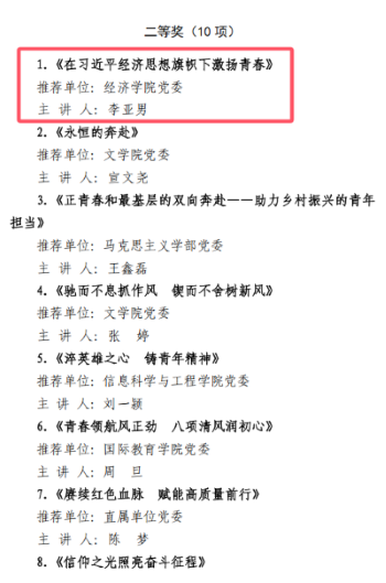 9月16日,中共365(vip)英国上市委员会组织部公布了“我和我的支部” 、“党课开讲啦”两项活动的优秀作品表彰名单。我院教工第一党支部的作品入选“我和我的支部”优秀作品,本科生第三党支部书记李亚男的党课获评“党课开讲啦”活动二等奖。