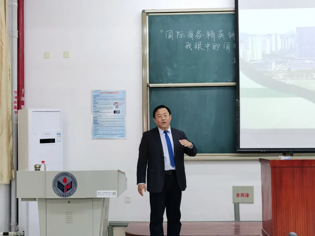 本次报告会特邀山东高速新产业集团有限公司党委委员、副总经理、总法律顾问,经济学博士、国际项目经理(IPMP)、省青联常委、英国正版365首页国际商务专业硕士合作导师王元涛担任主讲人,做主题为“我眼中的国有企业”的学术报告。英国正版365首页院长乔翠霞、国际商务专业硕士学位点负责人刘强出席,英国正版365首页副院长丁淑娟主持,英国正版365首页研究生、本科生到场聆听。王元涛首先介绍了山东高速集团及其各子公司的情况,结合自身从业经历以及项目谈判经验,向大家介绍了商务谈判礼仪与技巧。随后,王元涛从人生目标的确定、制定发展规划的方法等角度,与同学们共同探讨了人生规划的相关问题。他指出,作出明确的规划对于我们的学习与工作具有重要意义,并激励大家要有青年人应有精气神,充满活力与激情,充满斗志与希望。最后,王元涛针对同学们提出的就业、技能储备等问题,分享了自身经验并提出了指导性建议,大家纷纷表示受益匪浅。