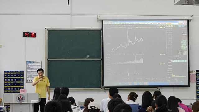 活动伊始,王学祝贺同学们成功晋级省赛,并详细介绍了省赛赛制,即三人分别以操盘手、策略师、风控师身份共同组队,继续以模拟股票投资的形式携手完成为期四周的省赛。紧接着,胡延军结合实例具体分析某股票走势分时图,讲解如何辨认分时图中各类坐标含义,如何通过分析股市中各类指标来选择买入、卖出的恰当时机,为同学们传递了海量的股市基本操作信息。同时,他提醒同学们要开拓视野,主动学习,综合考虑政策导向、经济发展、企业特征等因素选择时机买入合适股票。活动最后,现场同学踊跃提问,胡延军对同学们提出的各类问题答疑解惑,进一步丰富了同学们的相关知识。