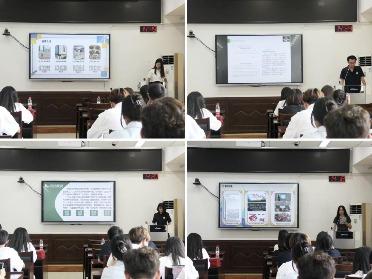 会议伊始,朱灏宣布了聘任刘炳阳、刘飞扬、邓晓蕾等10人为双创实践工作助理的决定,王学、李亚男分别为工作助理颁发聘任证书。随后,各社会实践队伍依次汇报展示暑期实践历程和实践成果。“双碳共赢,智慧转型”团队通过实地调研的方式,探究煤炭企业低碳转型的路径,获得了优秀的成果;时光遗音志愿服务队通过在多地开展社会实践活动,将非遗传承宣讲到祖国各地,争取做到“以青年之音助力非遗活态传承”;而“金葵花”反诈宣教服务队则致力于让反诈宣传遍布华夏大地,通过数据分析统计被诈骗的人数及人群,以实例宣讲反诈知识。在十组实践队伍答辩结束后,朱灏对各个团队的实践结果表示了肯定,最终,时光遗音志愿服务队等队伍脱颖而出,本次会议圆满结束。