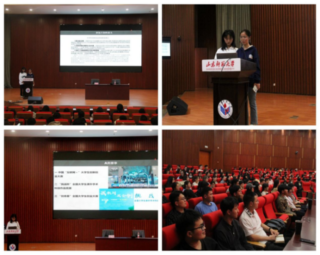 会议伊始,郭运含从指导思想、项目种类及申报条件对大学生创新创业训练项目进行系统介绍,讲述了参加科技创新竞赛的具体流程以及各类创新创业项目的结项标准,并主要从解决就业难、实现自我价值和社会价值、培养创新精神和开拓进取精神三方面概述了大学生创新创业的目的及意义。同时刘冰融在此基础上从大学生身份出发阐释了大学生群体在创新创业方面较其他群体的独特优势。她谈到,一方面,大学生经过科学的训练,更加具备将自身内在的创新创业潜能转化为现实的创新成果和创业机会;另一方面,大学在将创新转化为社会服务上具有独特的优势和氛围,大学生群体凭借这一优势,在学期间或者毕业以后可以更容易实现创新创业。随后,刘冰融从参加方法和选题技巧两方面对各类学科竞赛展开介绍,并从提升大学生专业能力、拓宽视野和丰富经验、增强自信心和自我认识、增加就业竞争力和培养终身学习和创新精神五个方面对参加竞赛的意义进行强调,鼓励在场同学积极报名参加。最后,她祝愿同学们能在科创竞赛舞台上一展身手,绽放青春该有的活力与创造力。本次宣讲大会圆满完成。