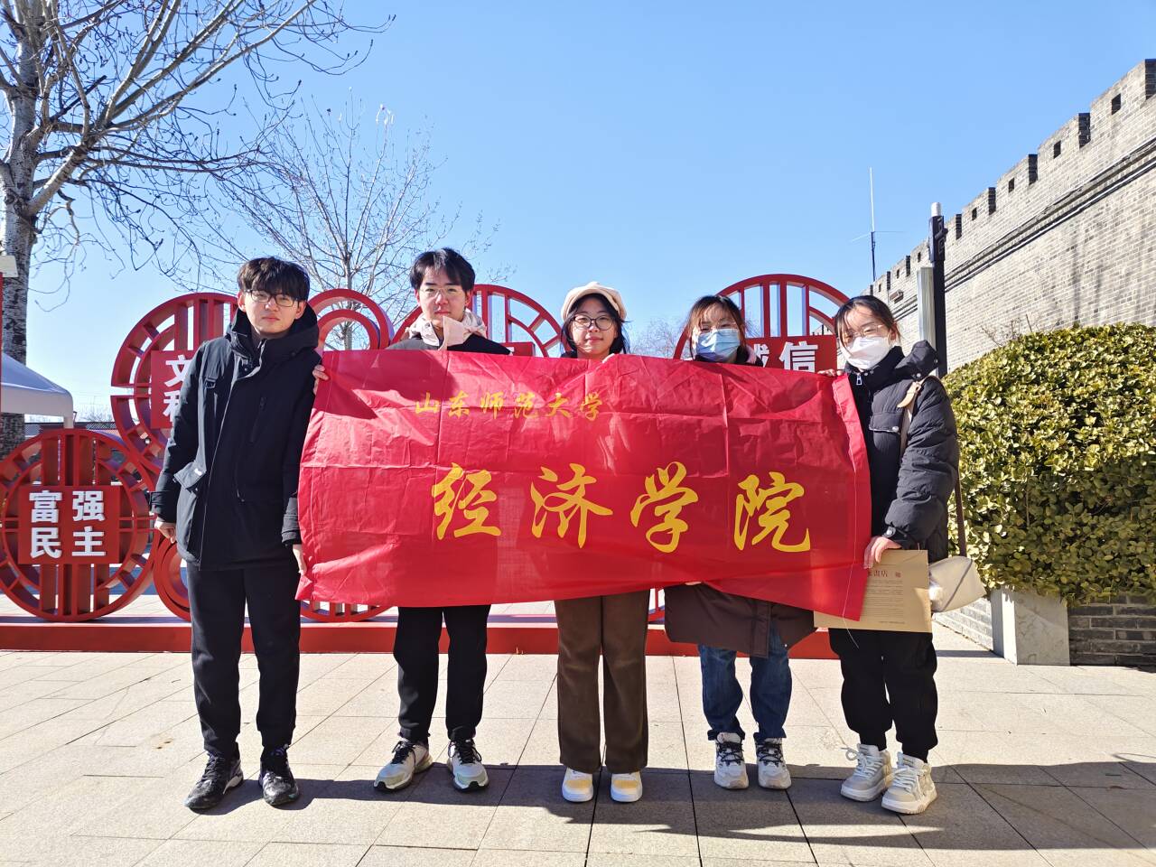 在景区负责人的带领下,队员们进入了大观园景区,由于大雪刚刚结束,为了保证游客出行安全,负责人安排队员们清理景区街面积雪,同时游客也和他们热情沟通互动,本次清扫积雪行动让队员们感受到了志愿服务是对自我价值与社会价值的实现。