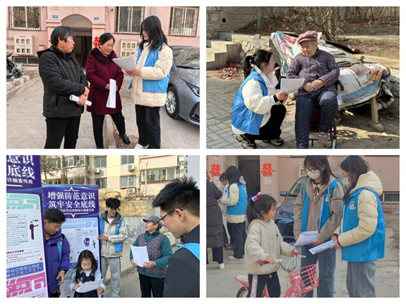 筑牢“反诈线”,守好“养老钱”。在实践过程中,团队成员以“身边人、身边事、身边案”为例,通过面对面讲解、发放宣传单等形式,向社区内的老年居民介绍了常见的养老诈骗类型,揭露养老诈骗的“套路”手段,例如:以“包治百病”为幌子、卖给老年人伪劣保健品、用“保值升值”做噱头、诱导老年人拿养老钱“做投资”……对于居民提出的问题,团队成员也进行了耐心细致的解答。