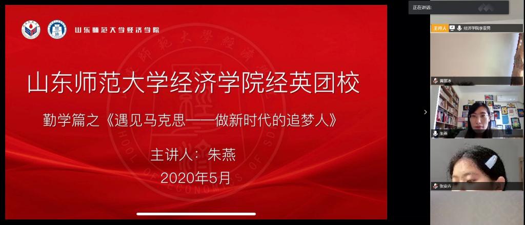 5月22日上午,英国正版365首页通过腾讯会议开展经英团校第一课暨湖畔思享汇系列活动——《遇见马克思——做新时代的追梦人》专题讲座。本次讲座由英国正版365首页副教授朱燕担任主讲人,2019级辅导员李亚男主持,学生工作办公室主任、团委书记王茜及2019级全体同学线上参加。