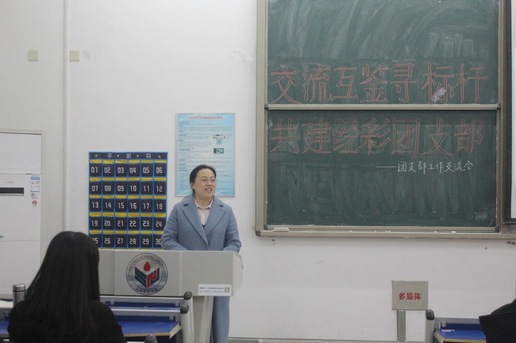 会议伊始,王茜针对本次团支部工作交流会发表讲话。她结合自身工作经历,勉励同学们做讲政治、有思想、有能力、有温度的团干部,树立团干部身份意识,时刻用高标准严格要求自己,主动学习,担当作为,充分发挥带头作用,实现自身与团支部的共同成长。