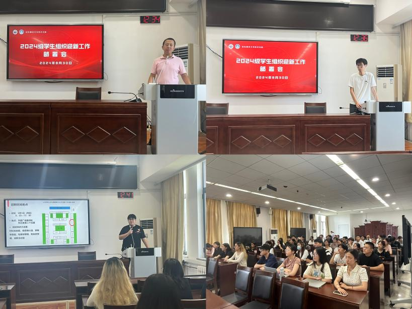 会议伊始,姚侃首先对同学们在学生工作中的付出与努力表示肯定。随后强调,迎新工作是开学重点工作之一,他号召所有工作人员要“温暖”迎新,让新生幸福回家,快乐学习。朱灏对学生干部提出期许和要求。一是要勤学习,不断提升专业知识和综合能力,在学生工作历练中增长才干;二是要用真心,讲奉献,要牢记学生干部初心,在服务同学的过程中成长自我;三是要善于协作,勤于沟通,积极发挥团队合力,提升工作实效性。最后,陈荣彦详细介绍了本次迎新的工作方案,从新生报到流程、迎新路线及志愿者具体职责等方面对迎新工作进行具体部署安排,具体安排了引导组、材料发放组、缴费确认组等各组工作标准。同时,他也提到,各负责部门在整个迎新过程中要做到统一行动、统一意识,树立起学校的良好形象。