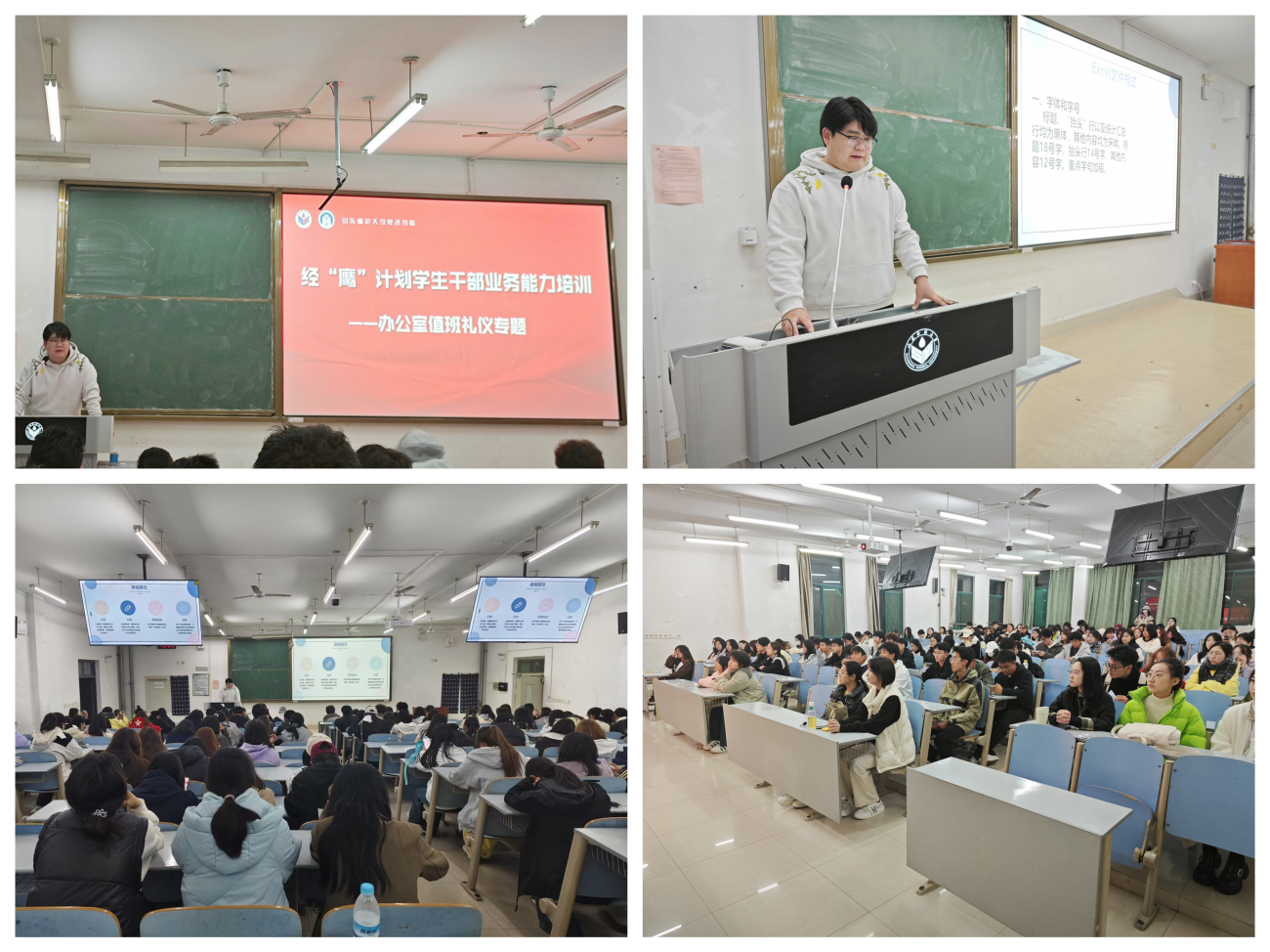 在此次培训会中,陈荣彦针对学生干部业务能力、办公技能、工作规范以及退会与考核问题展开培训,强调学生应不断提高业务能力和综合素质水平。在办公技能专题中,他围绕Excel文件格式、Word文件格式、共享文档、办公字体以及各项工作细节展开详细说明,提醒同学们在工作时应该注意文件格式以及文件属性,不断提高工作效率。在工作规范专题中,陈荣彦结合日常礼仪规范、工作交接协作、师生交流沟通等内容与同学们共同学习,引导同学们不断增强工作的主动性和规范性,确保工作实效。在退会与考核专题中,陈荣彦针对考核的内容、要求以及退会的注意事项等进行讲解,帮助同学们更好地遵守规范,维护学生组织的正常运行和良好秩序。
