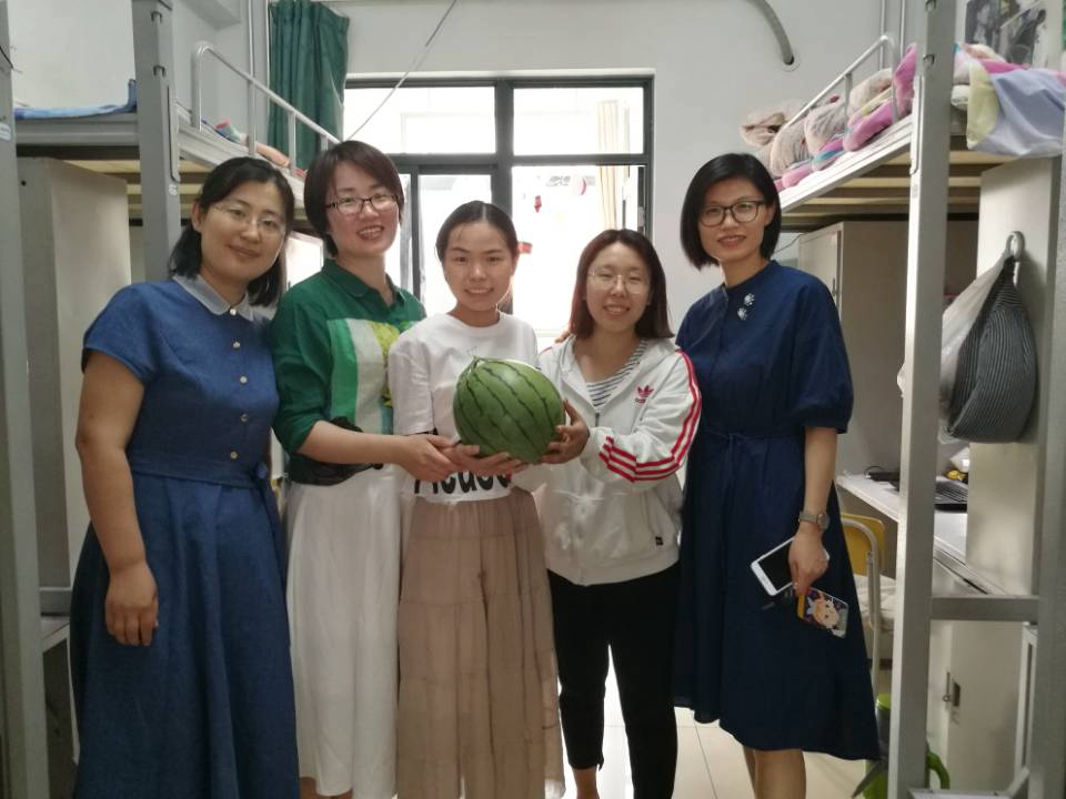 6月20日,英国正版365首页于长清湖校区举办“瓜甘缓暑清,话暖师生情”活动,学院党委书记张军,党委副书记、执行院长乔翠霞,党委副书记吕益国,副院长宁静波、丁淑娟以及全体辅导员分别至5号、11号学生宿舍楼,在炎炎夏日为2019届毕业生送上甘甜的西瓜,带去温馨的祝福。