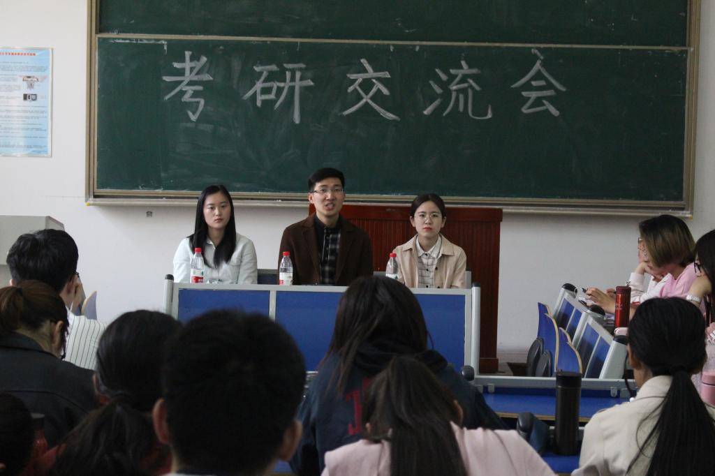 会议伊始,刘瑞喜交流自身考研经验,他从整体出发,全面周到地介绍考研,推荐良好的考研教程教材,指出应当注意的考研细节。他率先比较并分享考研院校,指出择校应当注意的主要因素,推荐优秀的考研院校。之后,针对学术型研究生考研科目,刘瑞喜逐科分析考研难度与学习方法,结合实际与自身经验,提出可行的方法,现场氛围良好。面对复试的难题,刘瑞喜总结自身经验,表示同学们应当先制作好一份有力的简历,面试之际显示谦虚,扬长避短,遇到问题大胆表达,且特别指出,套话的合理运用会为自己的面试加分添彩。他的讲解细致而不繁琐,逻辑性强,富有针对性及现实意义,在场同学们认真聆听,收获良多。闫梦莹的讲解对刘瑞喜的所讲内容起到良好补充。在各科目的学习过程中,她强调实际操作与整理是不可或缺的,学习目的一定要明确,懂得划分重点,且应当合理安排时间。李书颖从自身出发,就专硕考研提供参考经验。她在介绍专业型研究生考研内容的基础上,分享自身考研经历,她认为一定要全面了解考研所需的专业课程。最后,解惑环节到来,对同学们提出的396经济类联考学习时间分配的问题,李书颖耐心作答,并由浅入深,对其它考试科目复习时的时间分配也给予合理建议。在热烈掌声中,本次考研交流会圆满结束。
