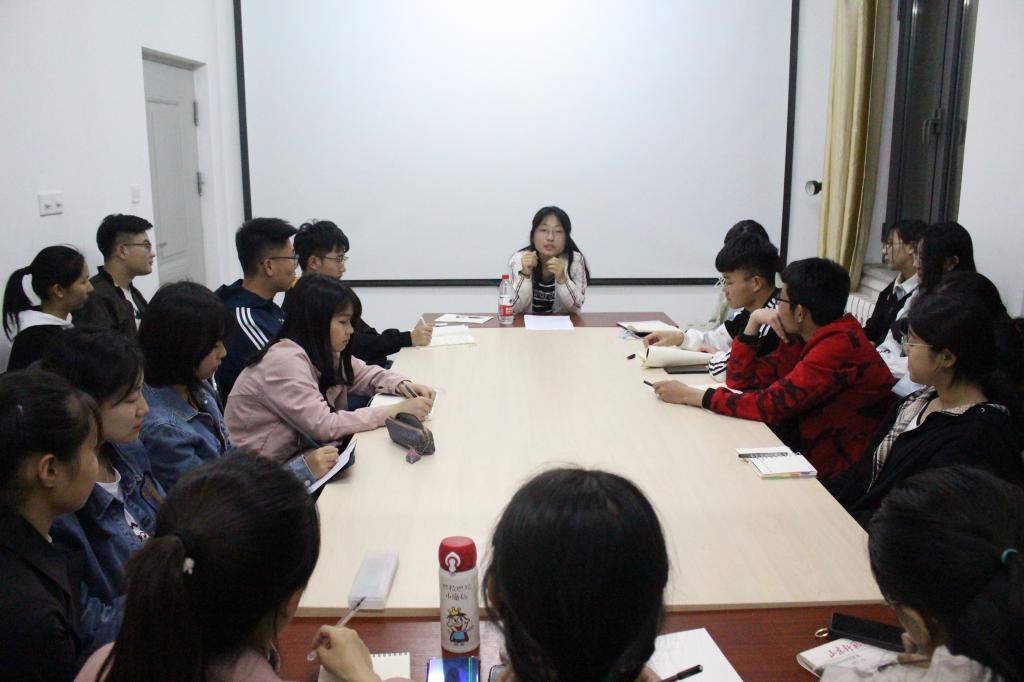 会议伊始,王垒开门见山,点明本次分享交流会的主题是中美贸易摩擦。她以“加油吧,大豆君”事件为切入点反映中美贸易战中的典型现象,揭露这场博弈中戏剧性的一幕。随后,她具体介绍中美贸易战的产生原因和发展历程。她指出,美国就钢铁和铝产品行业发布调查结果,认为现在钢铝进口可能威胁美国国家安全,中国作为最大的钢铁生产国和出口国,首当其冲受到美国制裁,而中国也不甘示弱,在农产品和汽车零部件方面也强制征税予以反击。这里她详细表明自己的认知和思考。她认为,根据经济学原理,关税不是一个解决贸易盈亏的好工具。她强调,贸易战打响之后,美国的汽车行业出现强烈关税反应,需要靠大量裁员来维持运营,同时这场贸易战也在冲击着全球产业链,以中国为主轴的亚洲国家成长迅速,美国此举也严重影响向中国出口中间产品的国家。随后,她提出人民币是否应该国际化,甚至取代美元的疑问。国贸1701班曲楠以美元发展为例,从利弊两个方面回答这个问题。最后,王垒将美国对欧盟采取的措施与中国进行对比,让同学们对这场国际贸易大循环的后续发展进行深入思考。