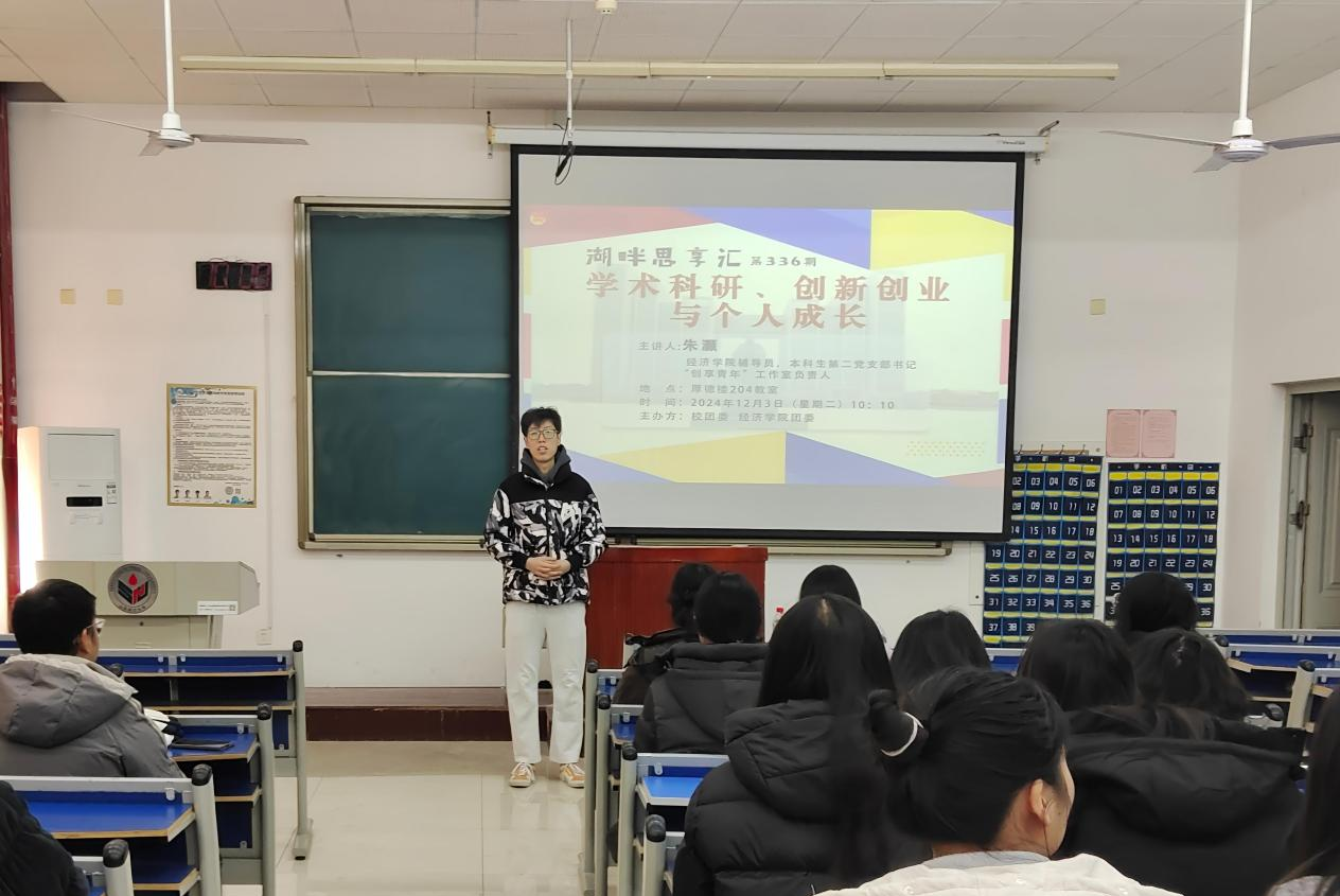 12月3日,校团委、英国正版365首页团委于厚德楼204教室举办第336期湖畔思享汇之“学术科研、创新创业与个人成长”主题交流会。本次交流会由研究生辅导员陈菲担任主持人,特邀英国正版365首页本科生辅导员、本科生第二党支部书记、“创享青年”工作室负责人朱灏进行大赛辅导宣讲,学院2024级全体研究生共90余人参会。