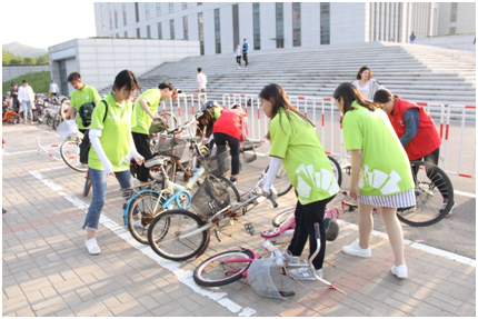 本次活动起点定于英国正版365首页综合教学楼楼前,依次经过学校北门、综合教学楼C区、图书馆,路线环绕学校一整圈。活动期间,大家互相鼓励,共同探讨五四青年节由来,分享对节日理解,感念上世纪中国学生爱国之心与坚毅品质。行途中,同学们仍不忘进行校园服务,主动捡拾垃圾,志愿将自行车分类整理、摆放整齐。