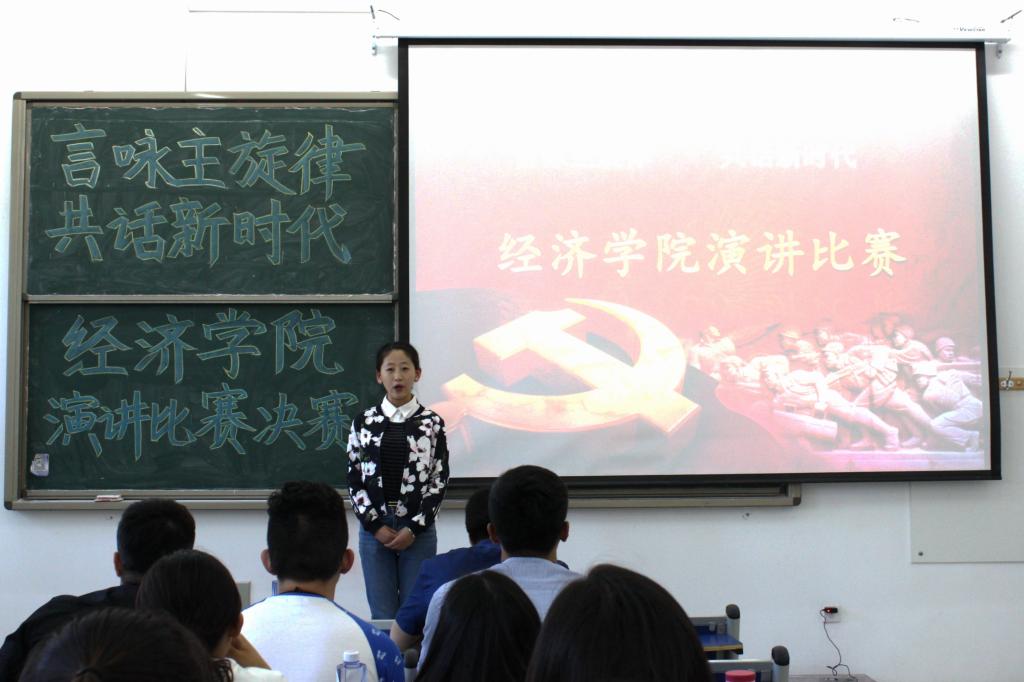 比赛在主持人简要介绍赛制后正式开始,参赛选手准备充分,将背景音乐与慷慨激昂的语调相结合,淋漓尽致地展现出了同学们青春正当年的新面貌。其中,国贸本1601班贾铭昕带来的演讲《传承创新红色精神,凝聚时代新力量》从自己的家乡沂蒙谈起,向大家重点介绍印象中的革命基地----六一八战备电台,且声情并茂地讲述了时代楷模朱彦夫与敌人殊死搏斗、勇敢面对身体残疾的现实、带领村民走上致富路的传奇故事,字里行间满溢其对革命先辈的敬意和缅怀。而经济类1702班李姝慧的演讲《砥砺前行,不畏坎坷》首先带领同学们回顾历史,从1978年的伟大转折到2018年中国走过改革开放四十年,通过四十年物质变化、文化发展和科技振兴等实例描绘了中国新时代的新变化。演讲诚恳真挚,感情温柔细腻,让在座观众不禁为之动容。另外,经济类1701班魏诗雨带来的演讲《回顾改革开放,拥抱全新时代》则由歌曲《父亲的散文诗》展开,从歌词中逐步剖析出四十年前的景象,感慨时过境迁,变化飞速发生。并呼吁同学们树立责任意识,担任起新时代发展的重大使命。经济类1706班宋丽芳的演讲尤其慷慨激昂,她立足于毛泽东将中国共产党的百年历史高度概括为“我们的政治本色”这一历史事实,回顾习近平总书记的知青岁月,勉励大家学习习近平攻坚克难,坚定不移追随党之精神。