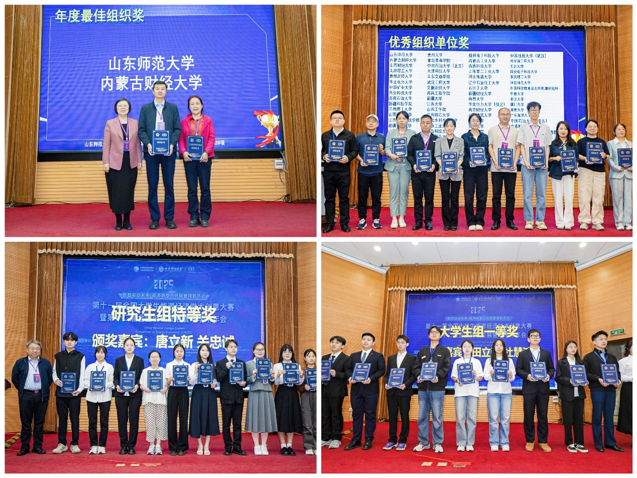 学院在教务处、研究生院、合作发展处的指导支持下,认真开展了校赛、省赛和国赛的各项备赛工作,我校提交作品数量居全国高校第1位,国赛获奖数居第4位。由宁静波、朱灏指导,王燕等同学完成的《“光”启新程,“能”富乡村:户用分布式光伏对农村居民增收的促进效应和优化路径研究——基于鲁豫冀苏地区的调查研究》荣获全国特等奖,由辛大楞、王学指导,陈上等同学完成的《数字的力量:数字技术创新赋能能源型企业绿色低碳转型研究——基于247家能源企业的调研》荣获全国一等奖,由吕益国、朱灏、钱婷婷、刘业业、冯学良、王磊、李佳、张羽等8位教师指导的11个项目荣获全国二等奖5项、三等奖6项。宁静波、辛大楞、朱灏、王学等4位教师荣获优秀指导教师奖。