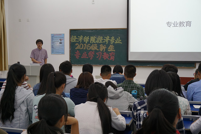 首先,王茜表示,大学的学习并不是高中所理解的那么轻松和自在,在大学的学习生活中,对个人要求更为严格,需要良好的自觉性和自制力,各位同学应加强对专业学习的重视,争取度过一个充实而有意义的大学生活。接着,沈明伟从“我们该不该抵制日货”入手,引导同学们站在经济学的角度看待和分析问题,并通过举例的方式,带领同学们用机会成本的方法解决日常生活中遇到的问题,调整了同学们感性方式思考的思想偏差,使大家深刻感受到专业学习的独特魅力。随后,李佳、张凤兵依次对专业教育、专业特点、课程设置以及专业发展方向作出详细指导。生动有趣的专业解说引起现场掌声连连,获得同学们的一致好评。