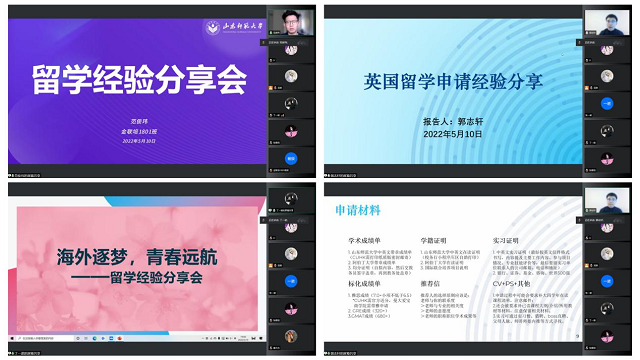 为拓宽学生视野,解答海外留学困惑,引导学生进一步明确发展方向,5月10日晚,英国正版365首页于腾讯会议平台举办“海外逐梦,青春远航——留学经验分享会”。本次分享会由金联培1801班房金煜、郭志轩和范俊玮担任主讲人。
