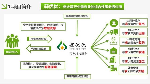 “蒜优优”项目以山东金乡的大蒜产业发展为基础,以数据信息服务为支撑展开研究,涵盖价格、出口、苗情在内的各项数据,整合金融、仓储、物流、加工、电商等服务。团队成员深入参与大蒜产业的各环节,着手解决发展过程中信息不对称、数据不透明、配资不健全等诸多问题,便利了大蒜经纪人业务开展,串联了蒜农、蒜商、蒜企等主体,形成了更开放、更高效、更透明的市场,推动了大蒜产业的迅速发展。
